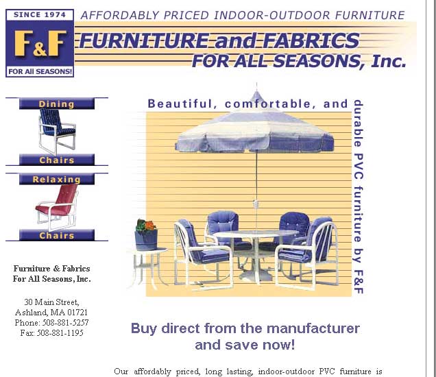 Furniture and Fabrics F&F wanted a professional Web site to present its unique and eye-catching pipe furniture and PVC products. |