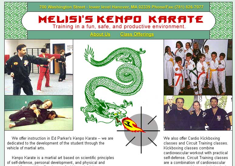 Melisi's Karate This martial art school wanted an attention-getting design that presents its general company info and current class offerings. |