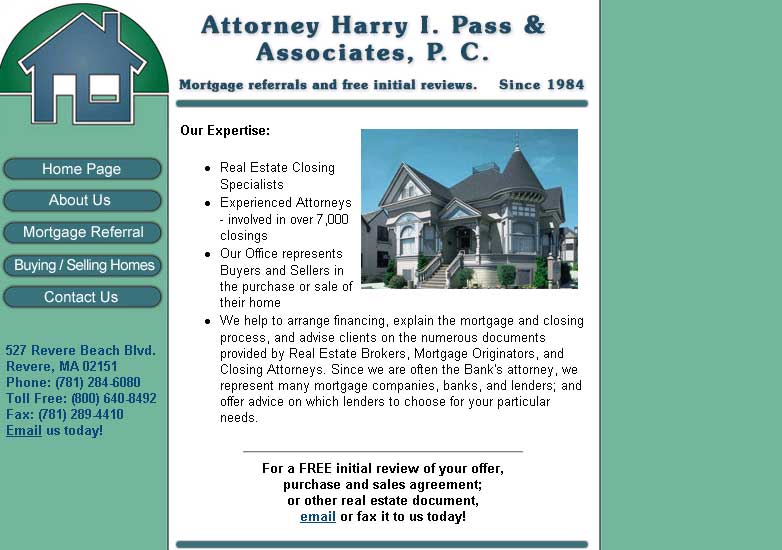 Harry I Pass, Real Estate Attorney Lawyers need Web sites too! This real estate attorney wanted to drive his marketing message home with a clean and attractive looking site. |