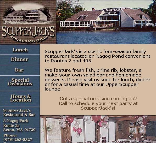 ScupperJack's Restaurant This client wanted a professional, attractive Web site to show his restaurant, menus, and services. |