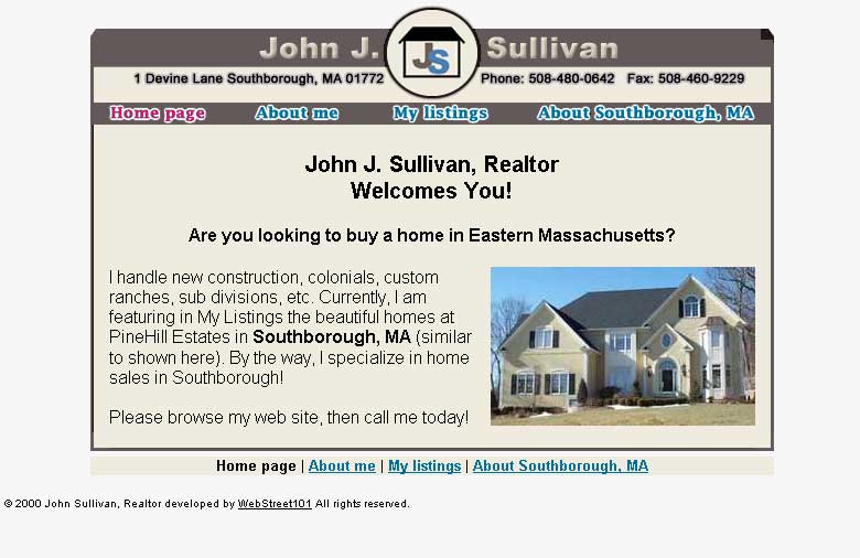 John Sullivan, Real Estate Agent This successful Realtor wanted a Web site that would convey his company as a small personal realty service and not as a big impersonal corporation. |